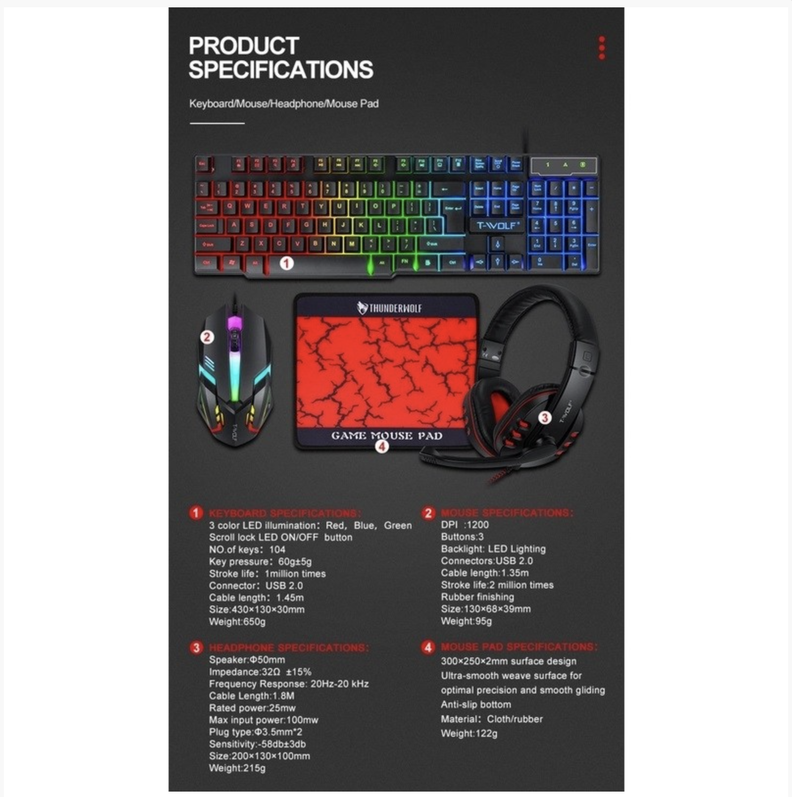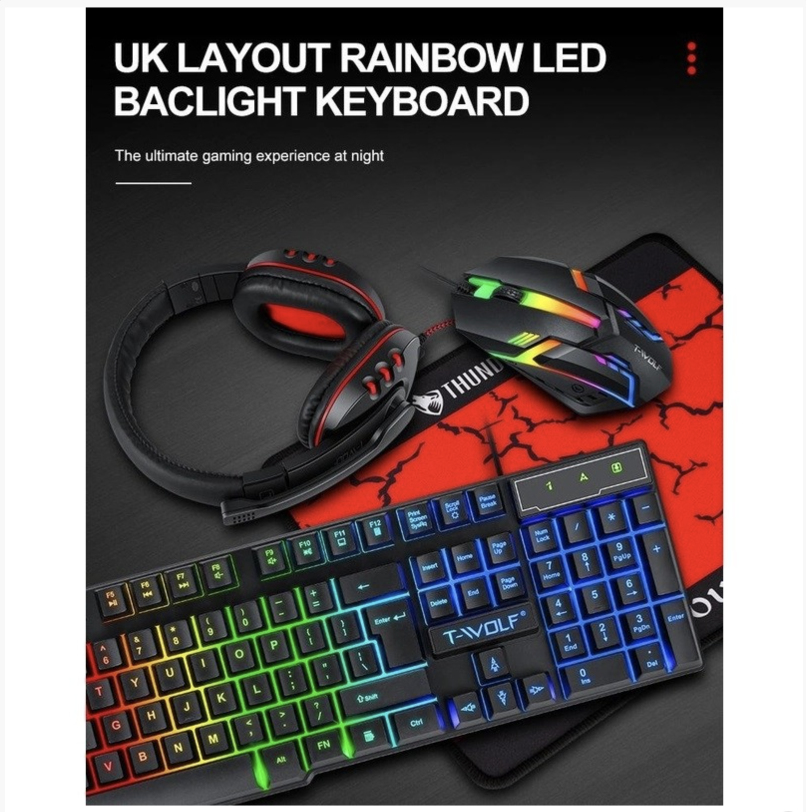 T-Wolf TF800 RGB 4 in 1 gaming keyboard mouse headphone and pad kit set keyboard mouse combos