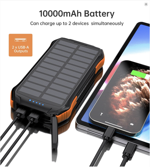 Power-On-The-Go In Any Situation: Our power bank provides a durable portable power source for both indoor and outdoor use. Equipped with a durable exterior, fully water and dust proof with a built-in bright LED flashlight to futher secure your safety during outdoor travels - the ideal companion for outdoor enthusiasts. Whether you are out camping or experiencing a power outage - give the battery a boost wherever there is direct sunlight.